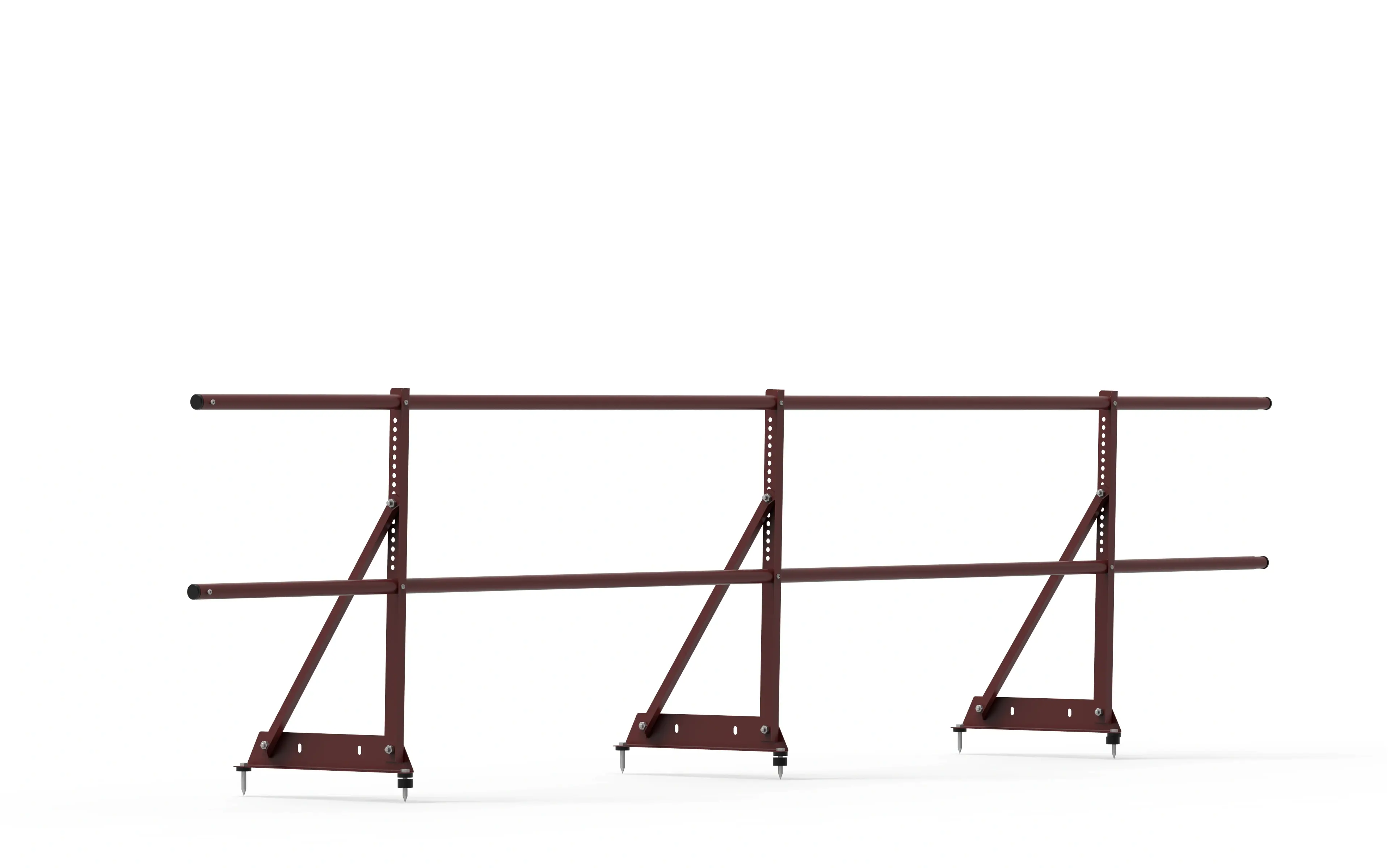 Ограждение кровельное BERG RAL 8017 шоколад 2 трубы L 3000 мм H 600 мм D 25 мм представляет собой вертикальный элемент безопасности кровли, который обеспечивает безопасность перемещения по кровле при проведении профилактических работ, обслуживании и ремонте.