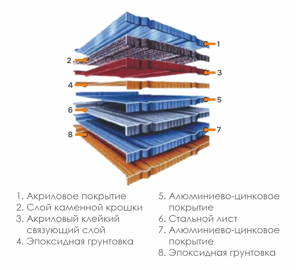 - Каменная крошка служит дополнительным защитным слоем, который предотвращает появление царапин и вмятин на поверхности черепицы