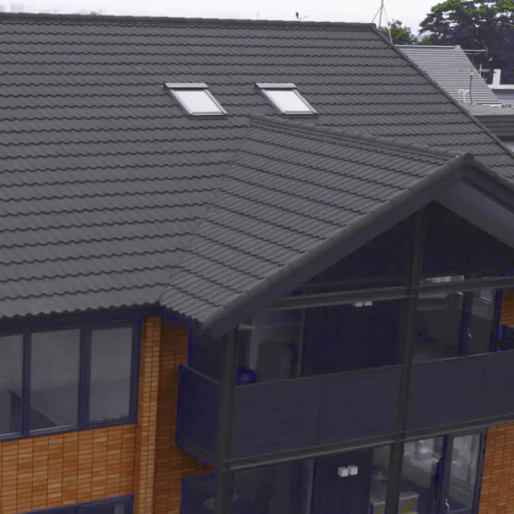 - Не подвержена горению и не издаёт шума во время дождя. Вобрала в себя лучшие свойства металлической и мягкой черепицы.